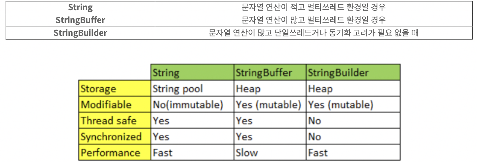 이처럼 스트링은 불변의 속성을 가지므로 변하지 않는 문자열을 자주 읽어들이는 경우 사용하면 적합하다.