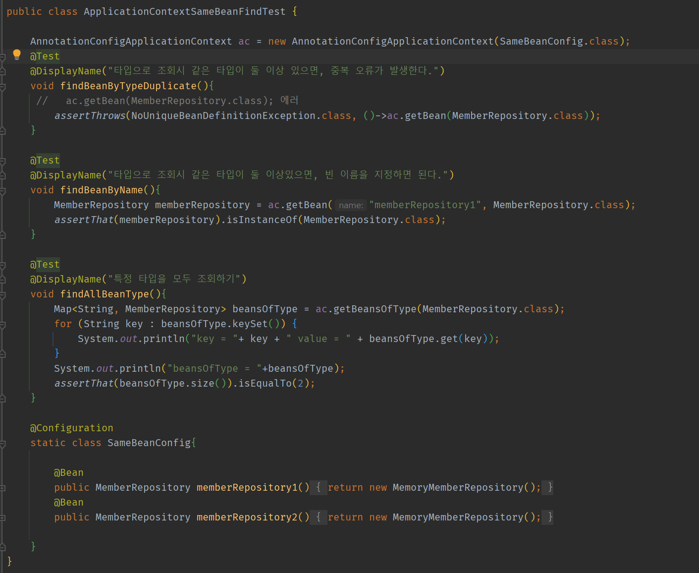 Map<String, MemberRepository> beansOfType = ac.getBeansOfType(MemberRepository.class);