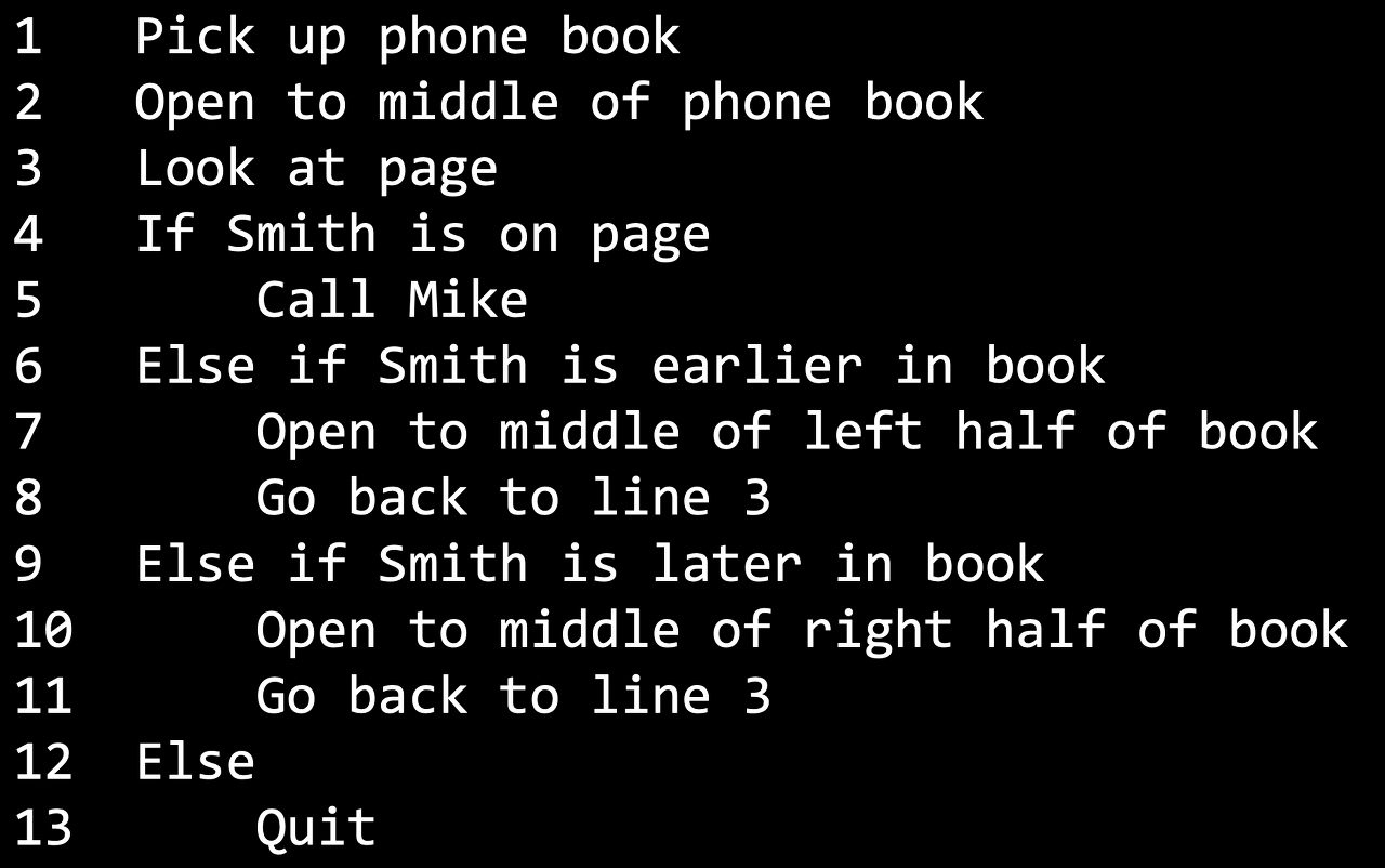 하지만 언젠가는 Mike Smith 가 전화번호부에 있다면 이 알고리즘을 통해 Mike Smith 를 찾을 수 있을 것이다.