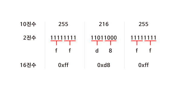 10은 a, 11은 b, …, 15는 f를 대입하여 사용한다.