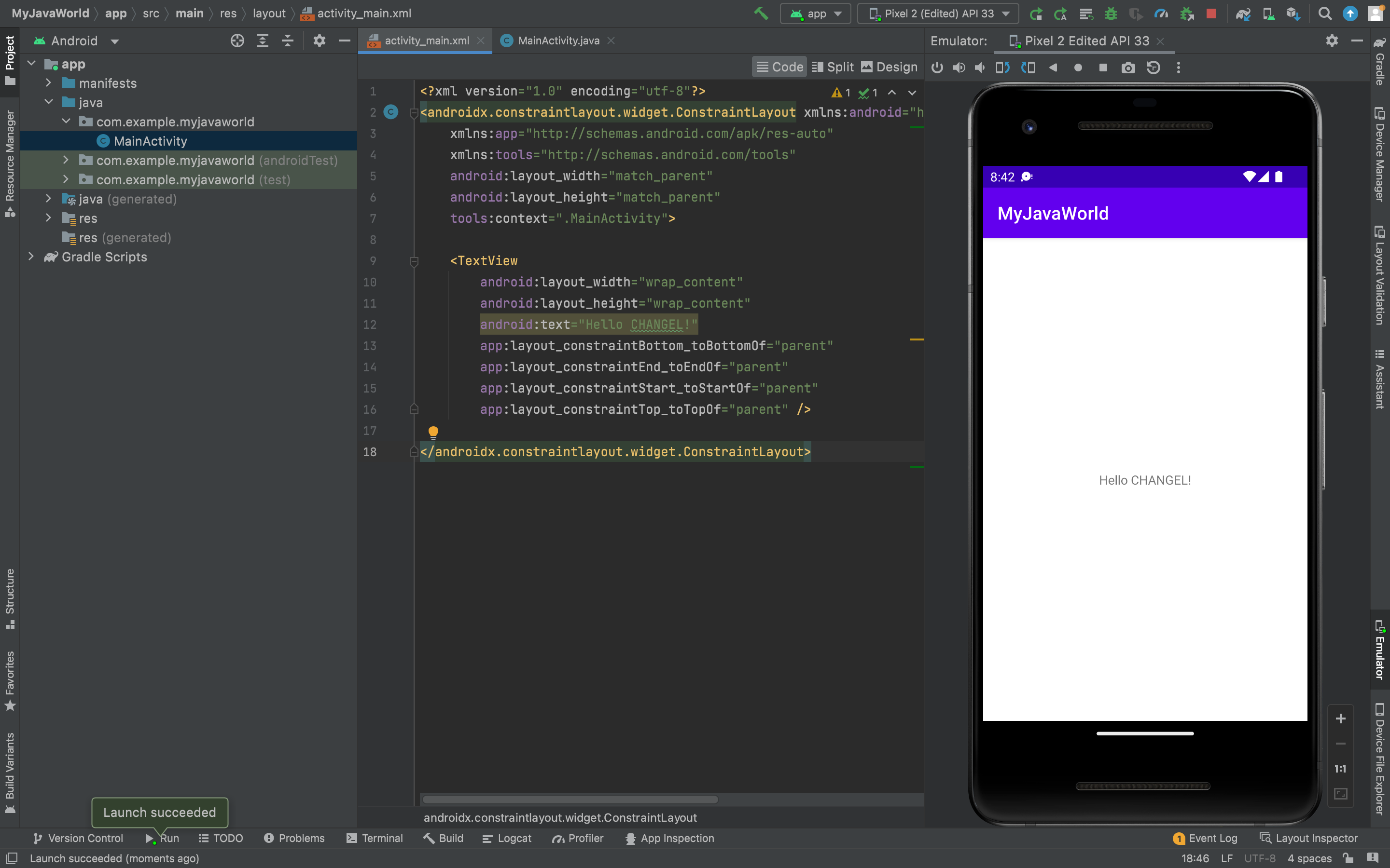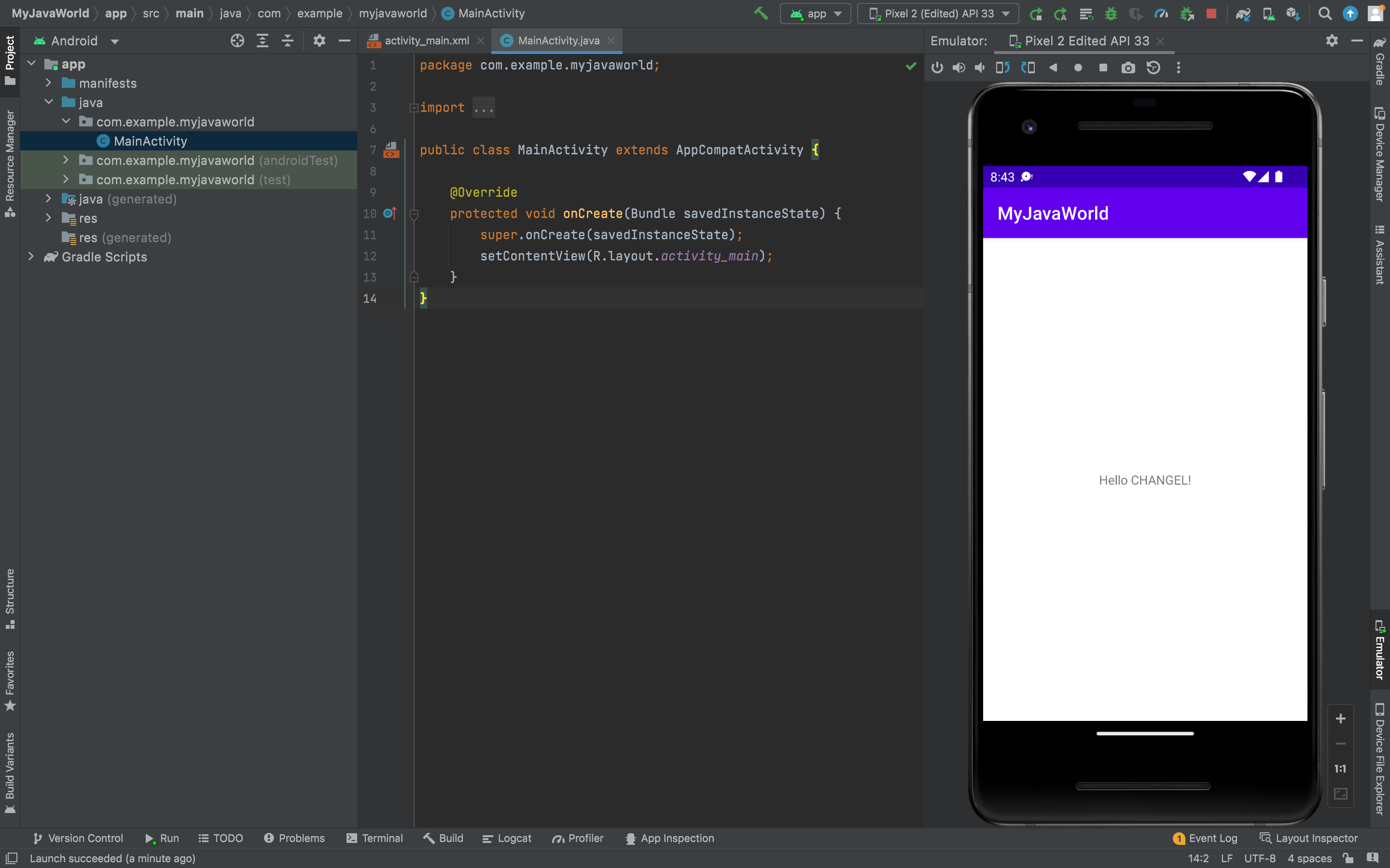 프로젝트를 생성하면 MainActivity.java 파일이 자동적으로 생성된다.